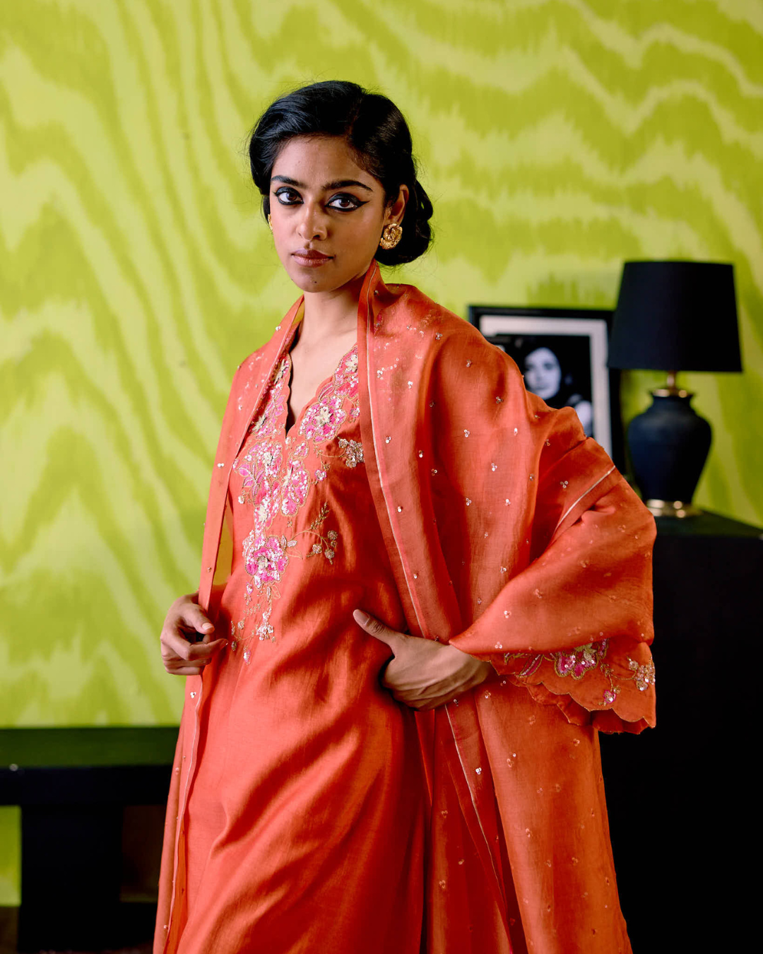 Each piece in this collection is adorned with delicate embroideries, woven with stories of tradition, and brought to life through playful floral prints in radiant, sunlit shades. Designed for the modern muse who treasures both heritage and contemporary flair, Feels Like Summer embraces the spirit of celebration. Slip into a world where the vibrant blooms of summer meet the intricate artistry of Indian textiles – a collection that feels as light and carefree as a summer breeze, yet as timeless as the traditions it honors.