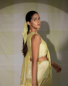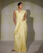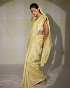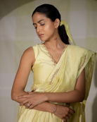 Perfect for your summer weddings, featured here is our finest lime yellow sari in silk with embroidered hem all over.