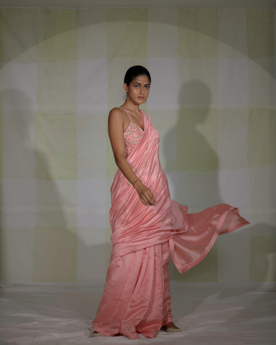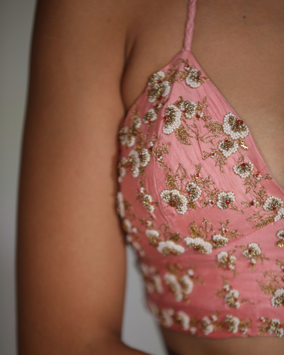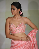 Featured here is our pink embroidered saree with fine sari and moti work embroidered all over.