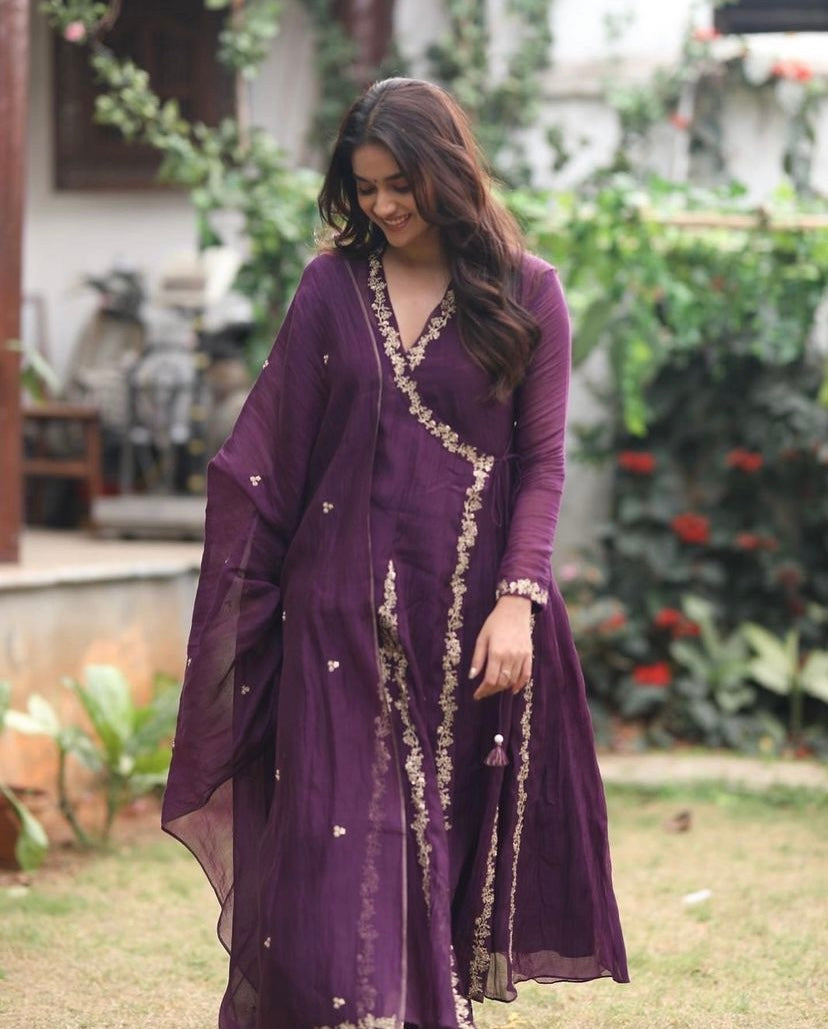 Keerthy Suresh In Our Aubergine Cross Over Angarkha Set