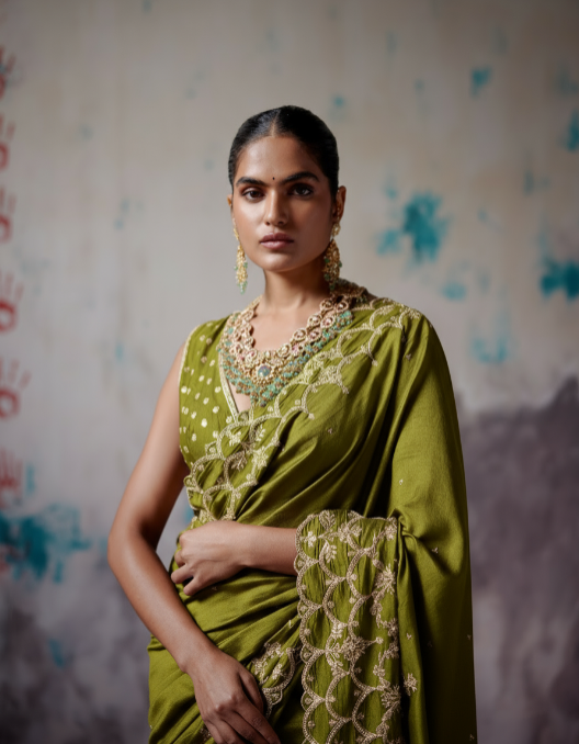 M / Unstitched Blouse / Petticoat+Pre-drape Saree