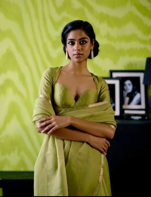 Sage Green Organza Saree with Printed Blouse