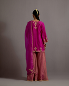 Fuchsia Hand Embroidered Kurta with Sharara Set