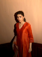 Description: Featured here is A line kurta set with hand embroidered details on neckline and sleeves. The kurta is paired with a straight fit trousers and leheriya organza dupatta.
