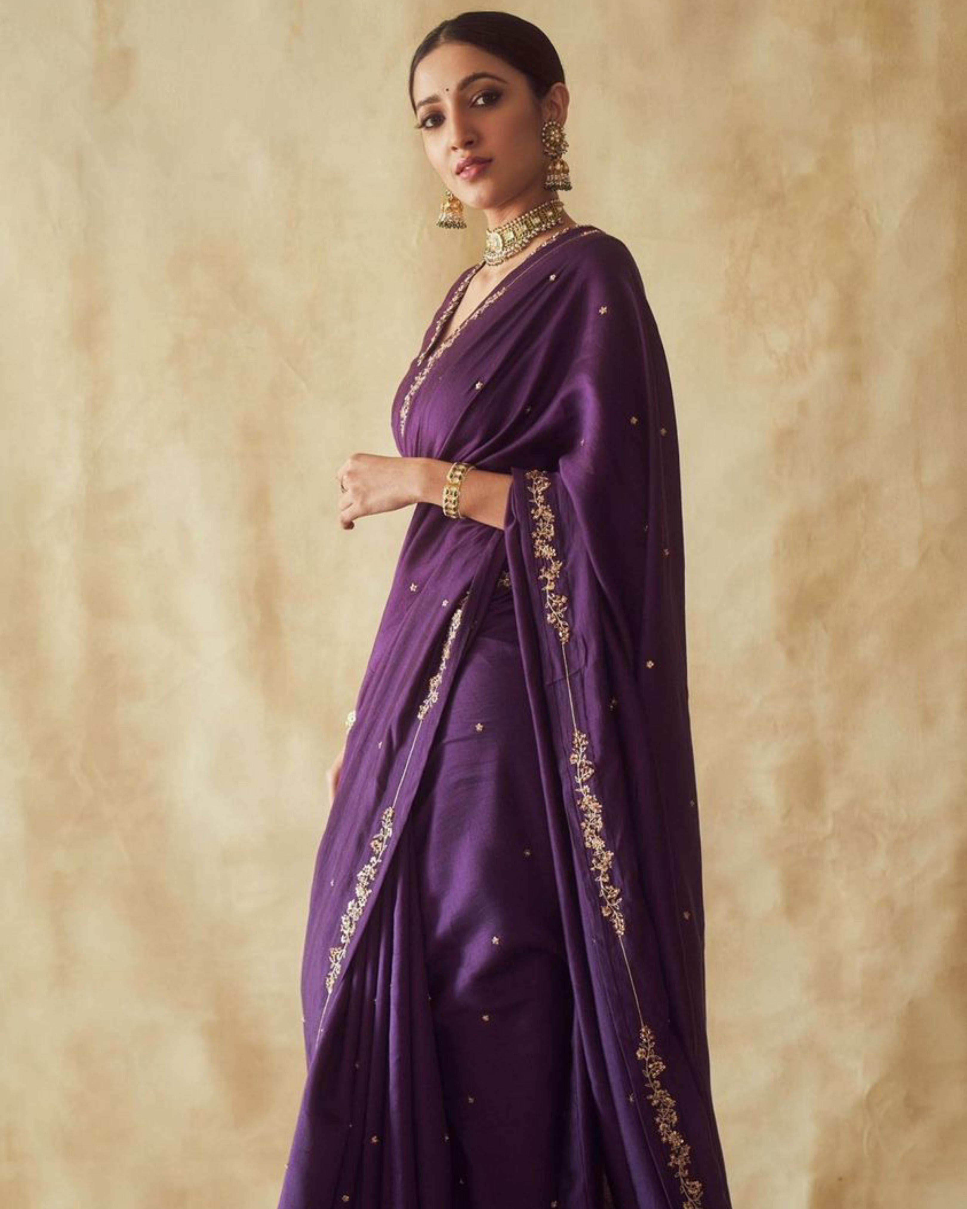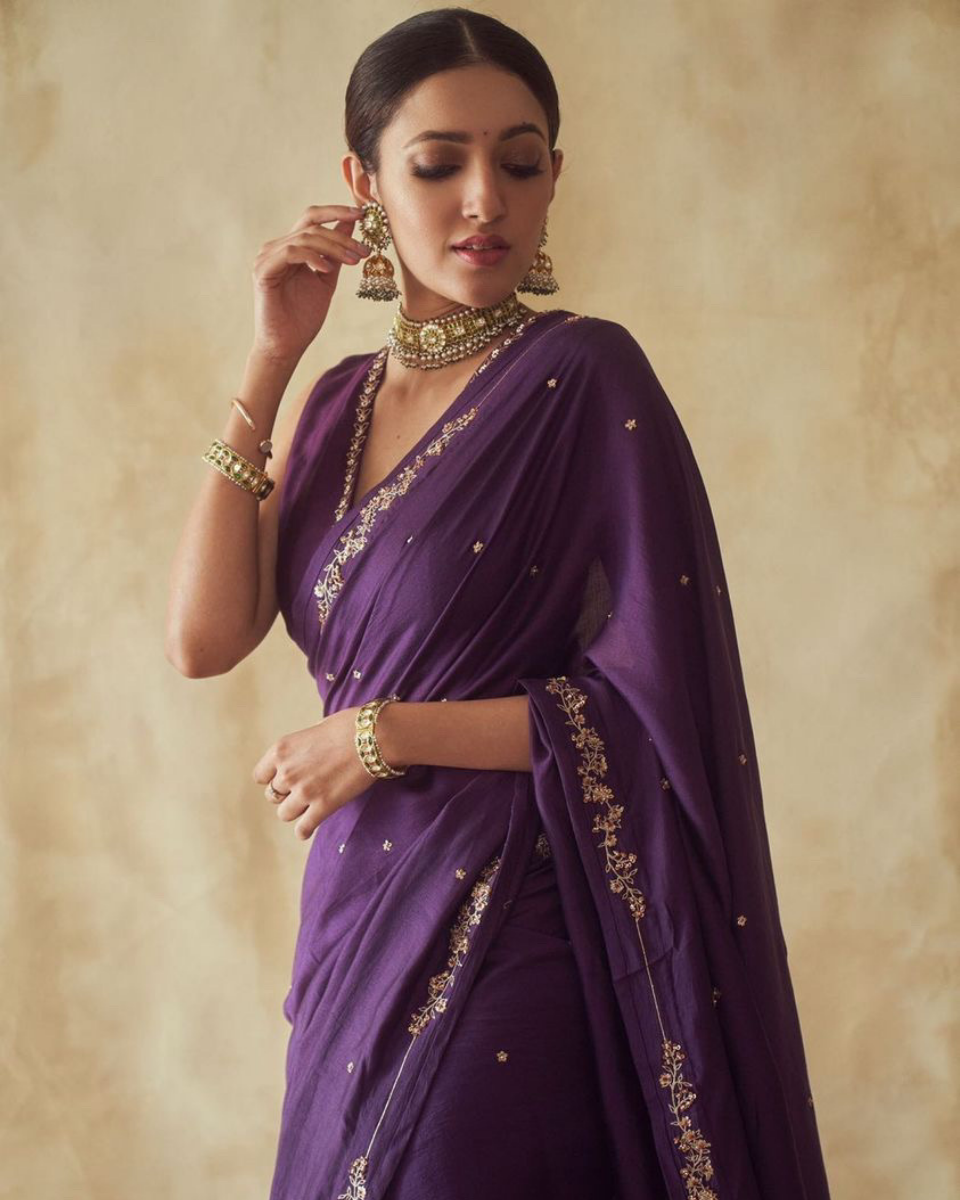 Neha Shetty In Our Aubergine Hand Embroidered Sari