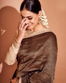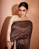 Genelia Deshmukh In Our Black Tissue Striped Saree