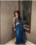 Neha Shetty In Our Teal Blue Half & Half Organza Saree