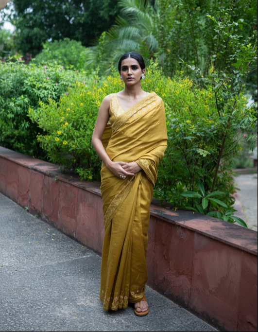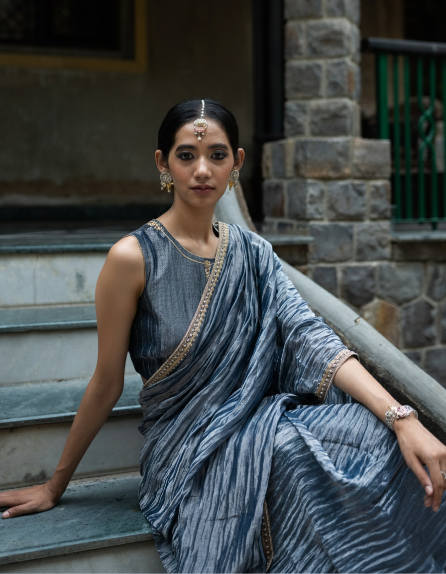Neha Shetty In Our Teal Blue Half & Half Organza Saree