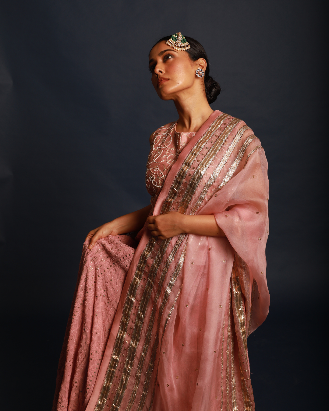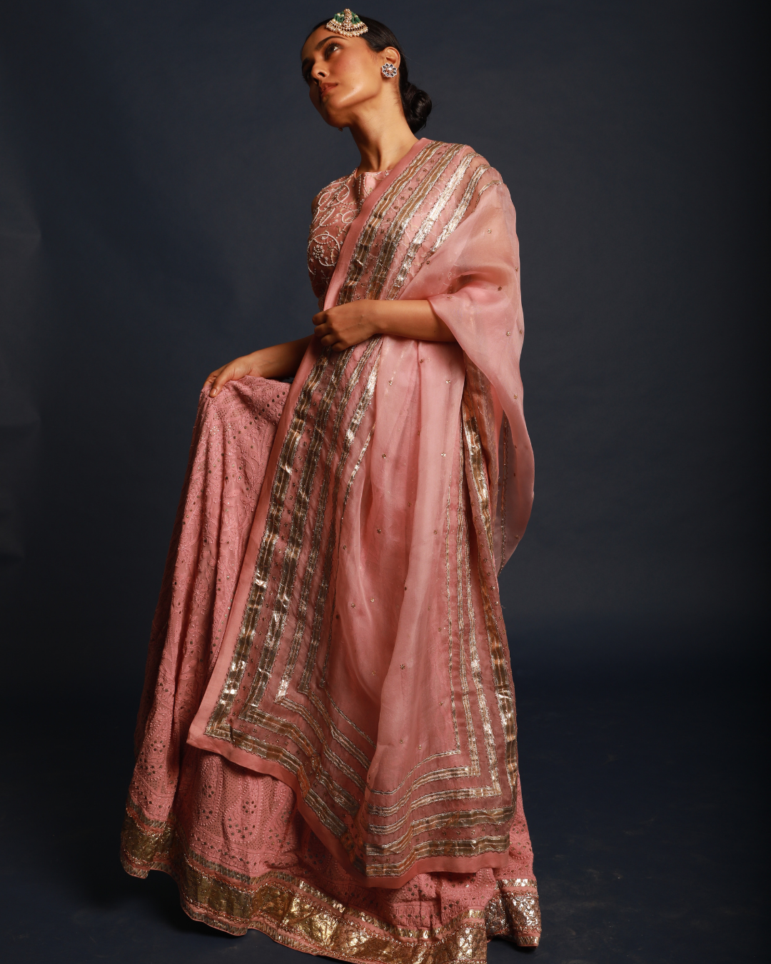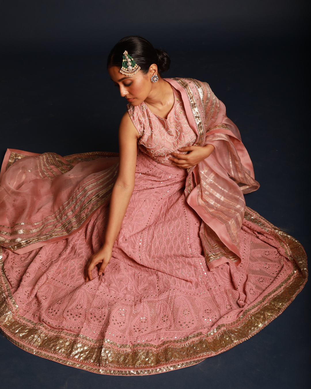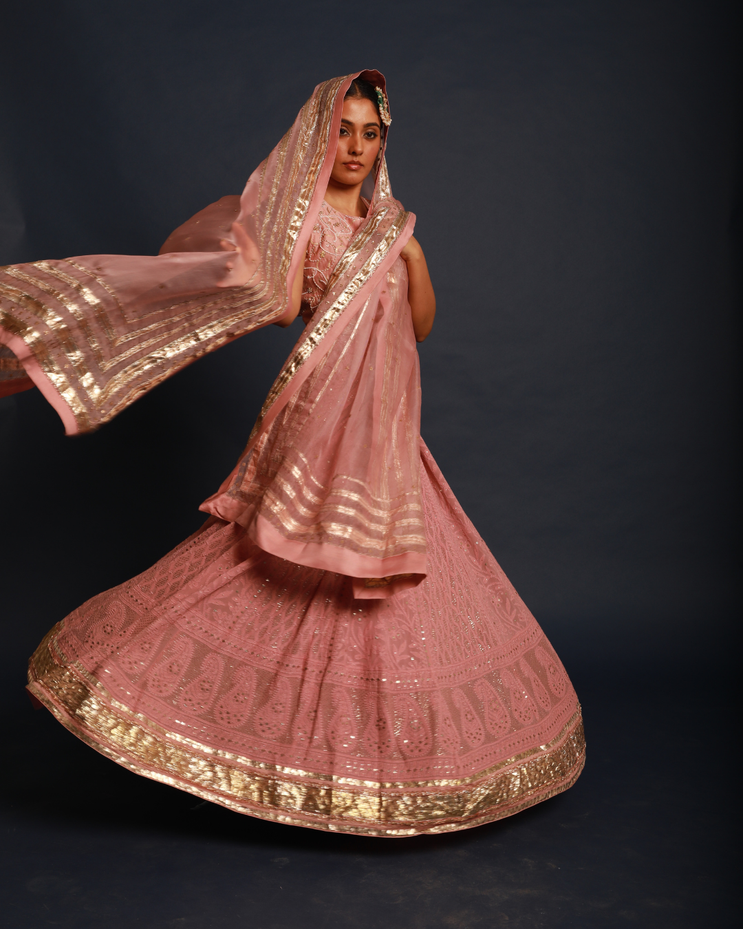 Salmon Pink Lucknowi Lehenga Set