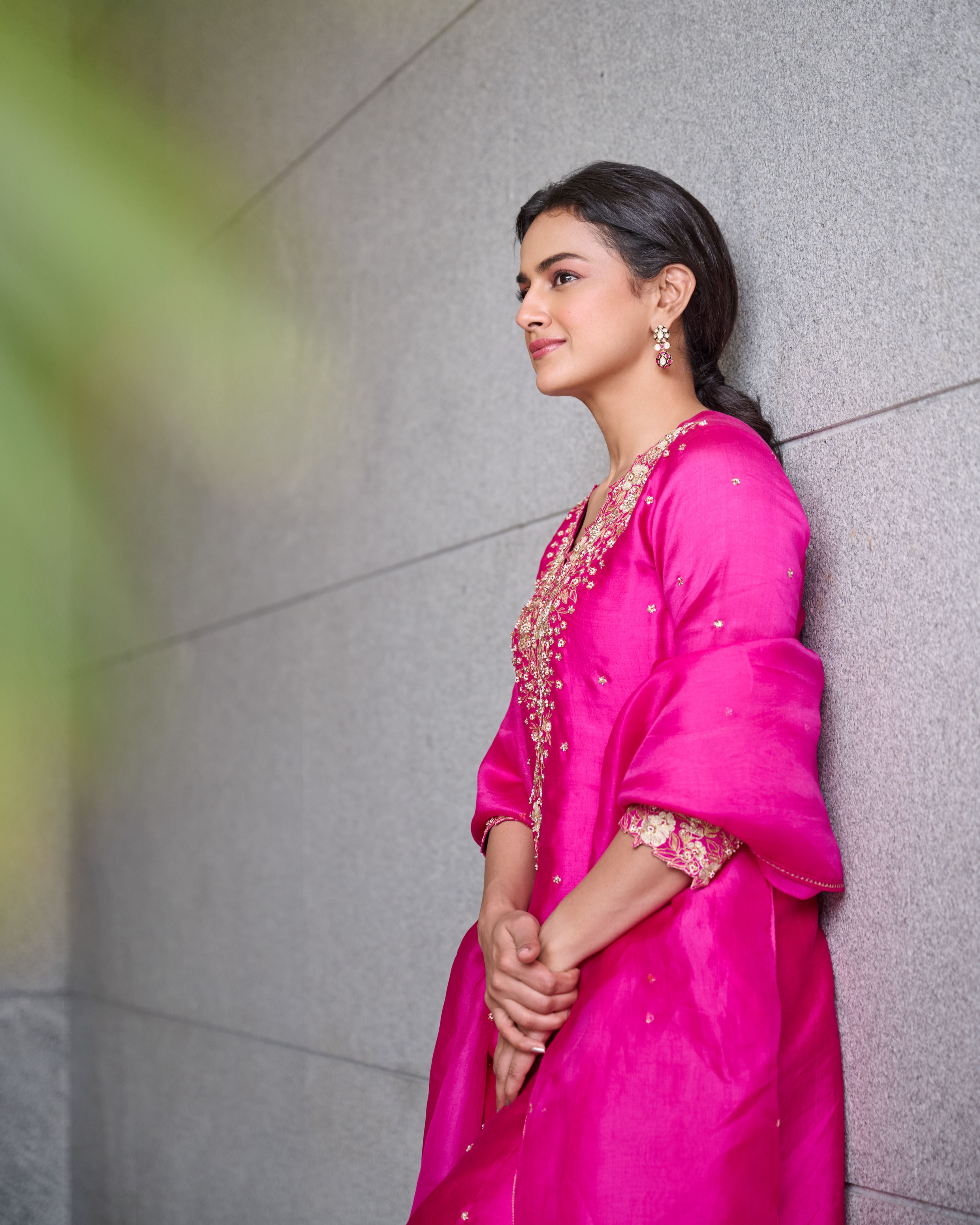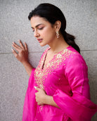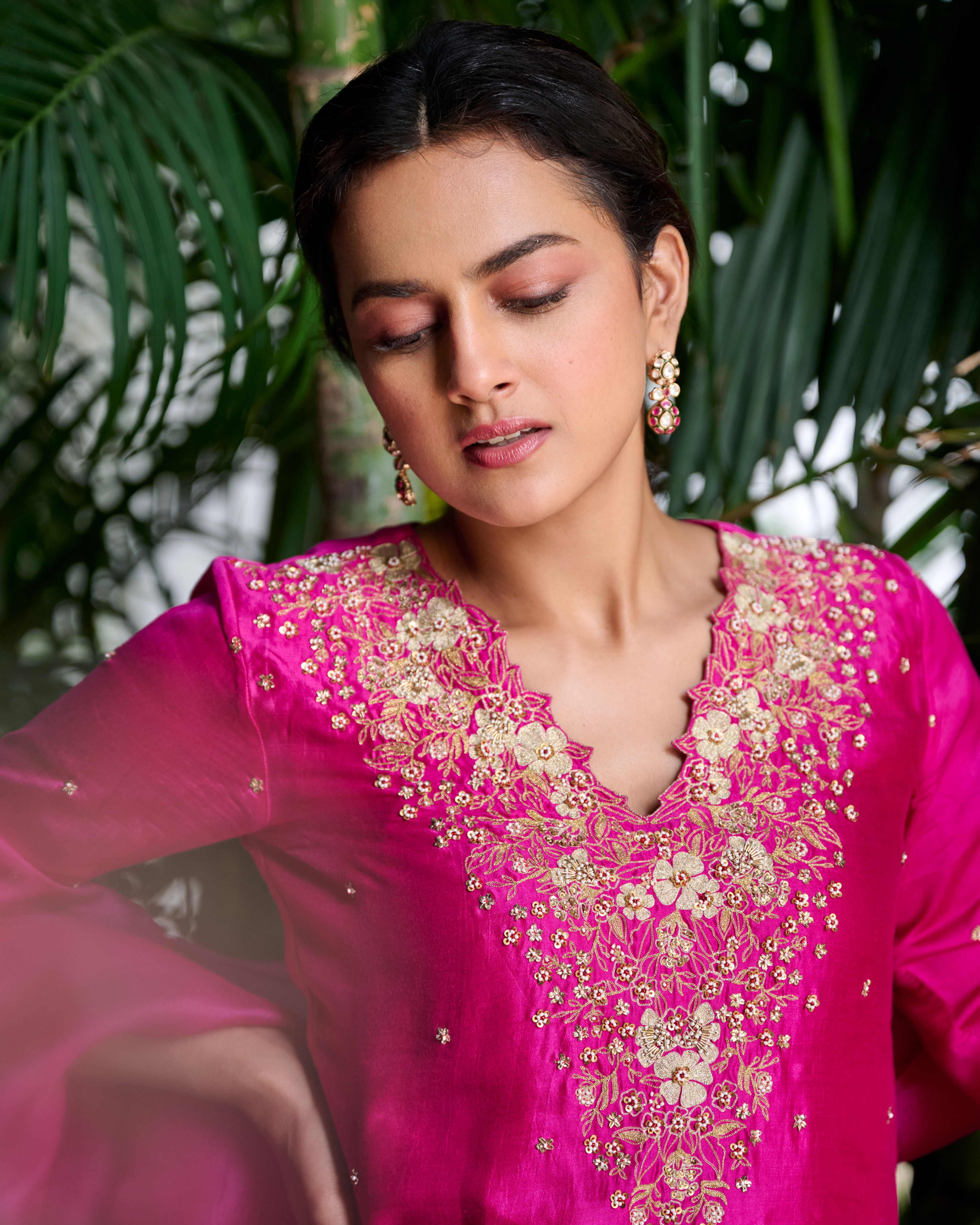 Shraddha Srinath In Our Fuchsia V Neck Kurta Set