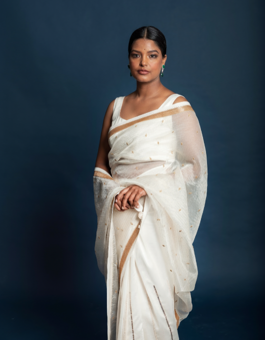 Shefali Shah In Our Varnah Ada Line Hand Embroidered Saree with Blouse