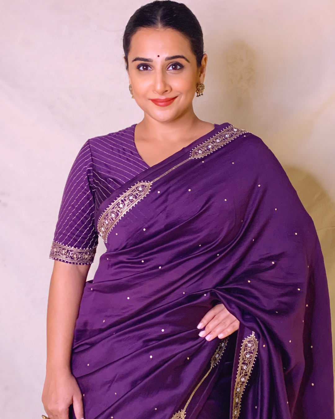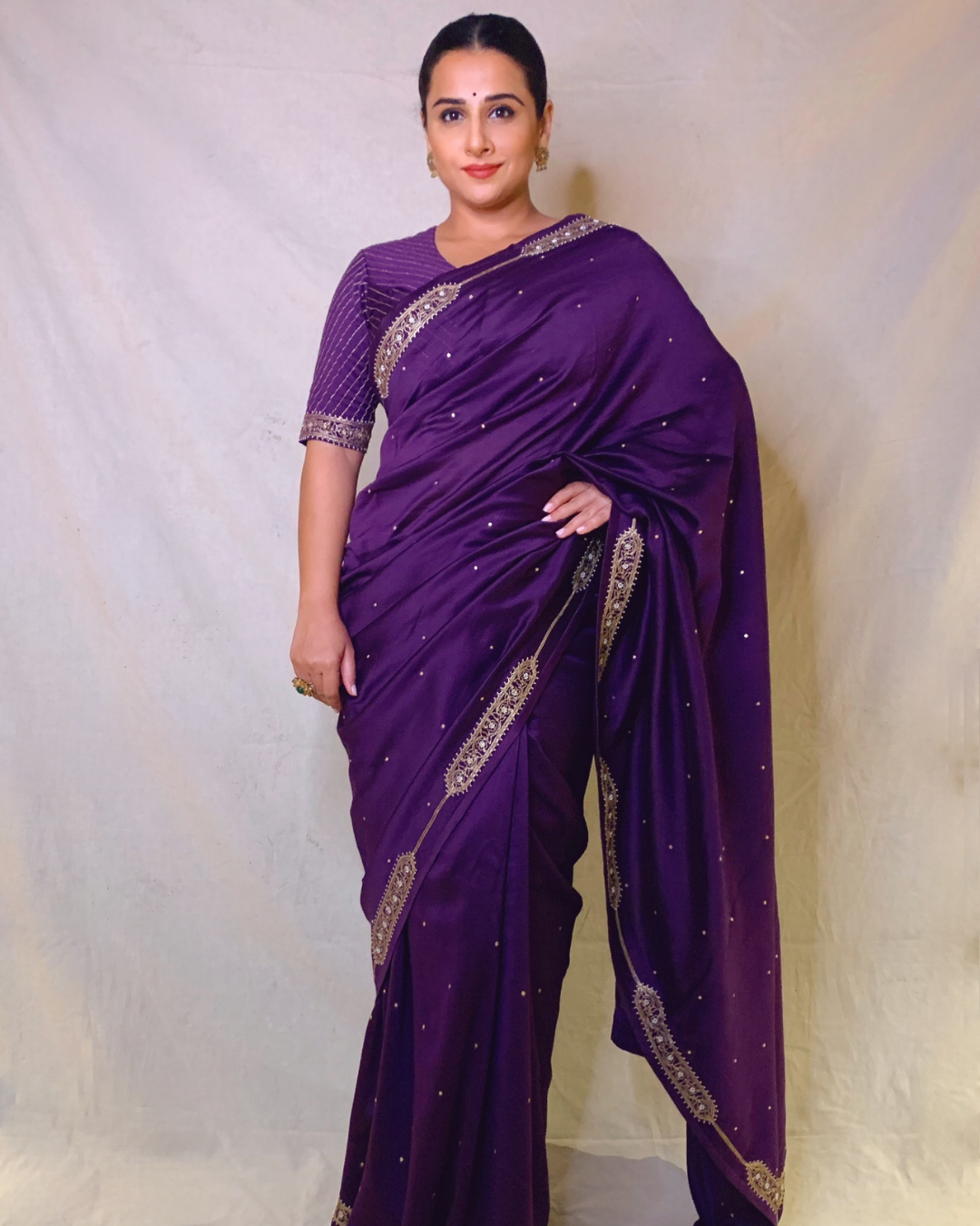 Vidya Balan In Our Aubergine Mughal Border Sari