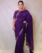 Description: Featured here is our aubergine chanderi silk saree is intricately hand embroidered with zari and moti inspired by the vintage mughal motives.