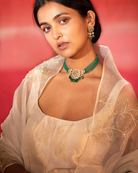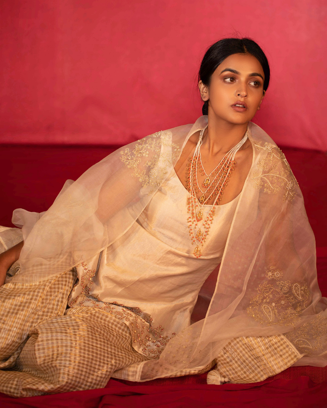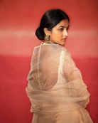 The set is paired with hand embroidered dupatta in organza.