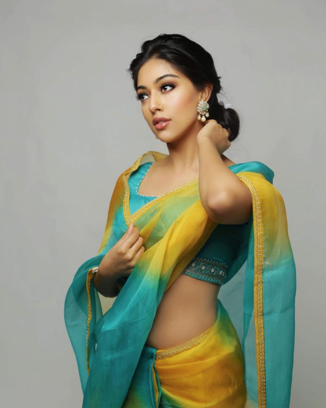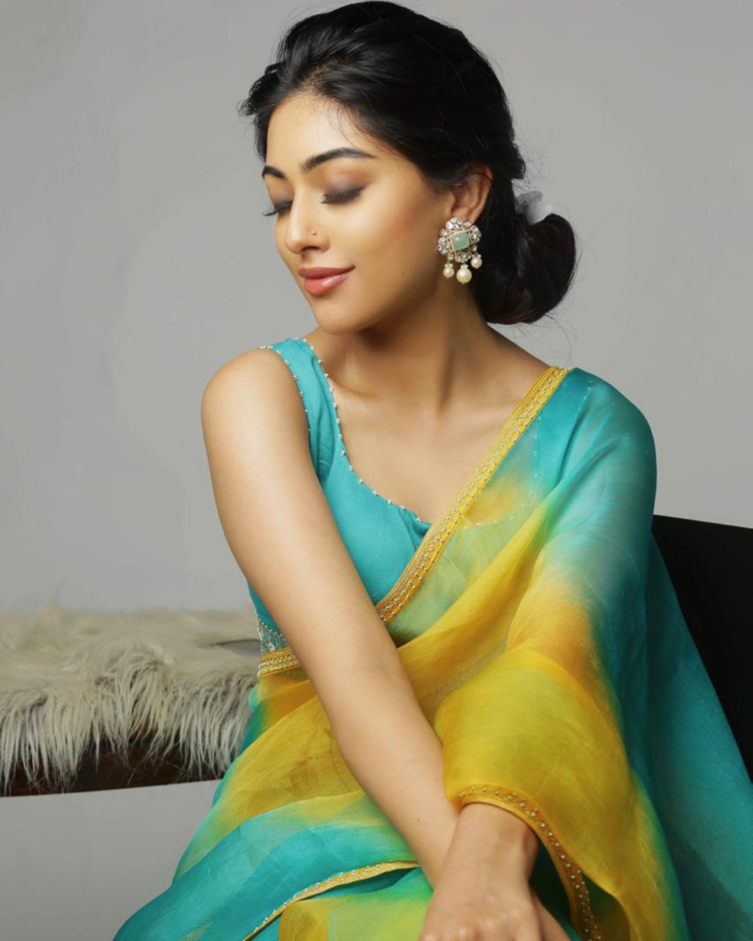 Anu Emmanuel In Our Yellow & Turquoise Ombre Saree